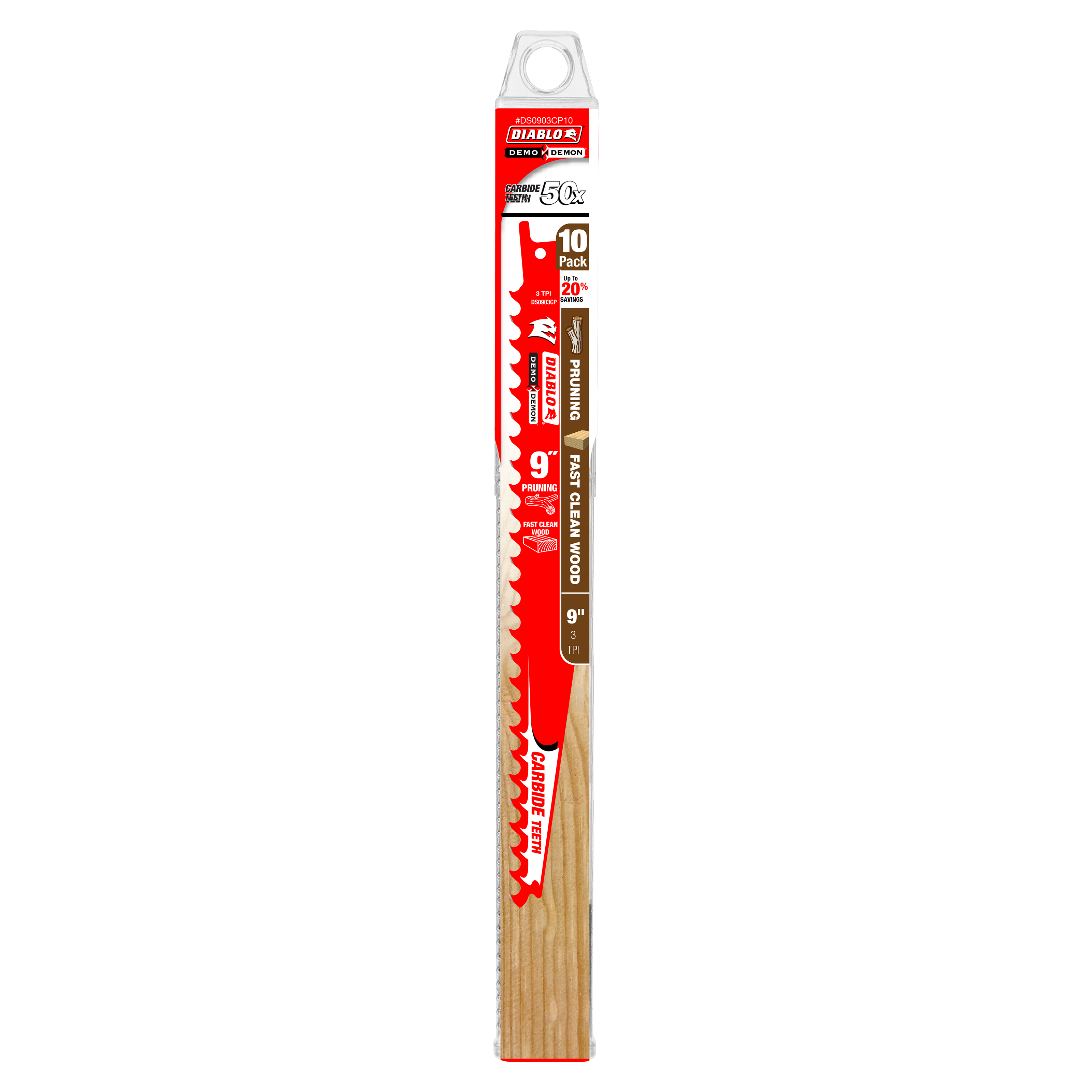 Diablo DS0903CP10 9" 3TPI Demo Demon™ Carbide Tipped Reciprocating Saw Blades for Pruning and Clean Wood (10-Pack)