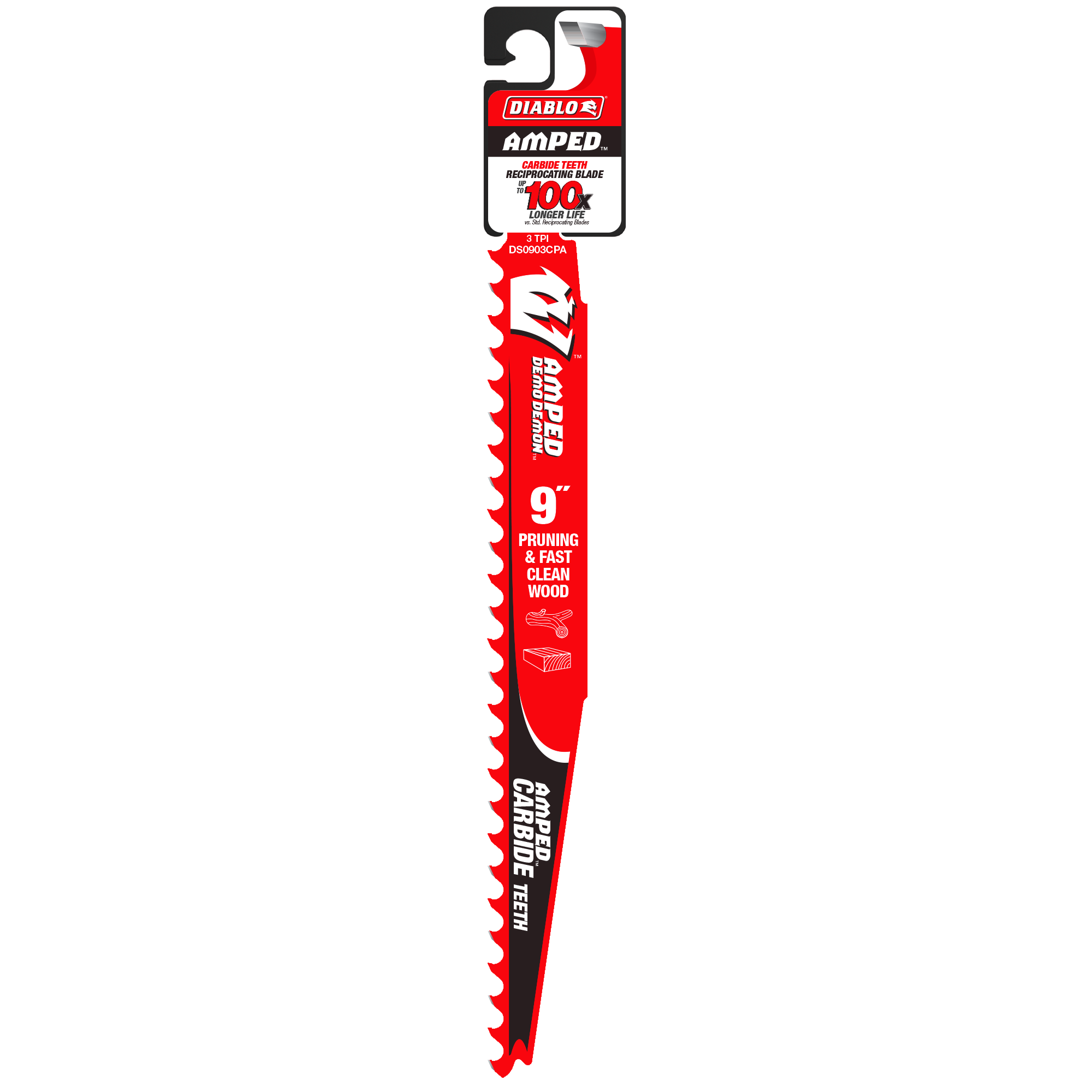 Experience the ultimate in cutting performance with the Diablo DS0903CPA 9" 3TPI AMPED™ Demo Demon™ Carbide Teeth Reciprocating Saw Blade. Designed specifically for pruning and clean wood demolition, this blade is engineered to elevate your cutting tasks to new heights.