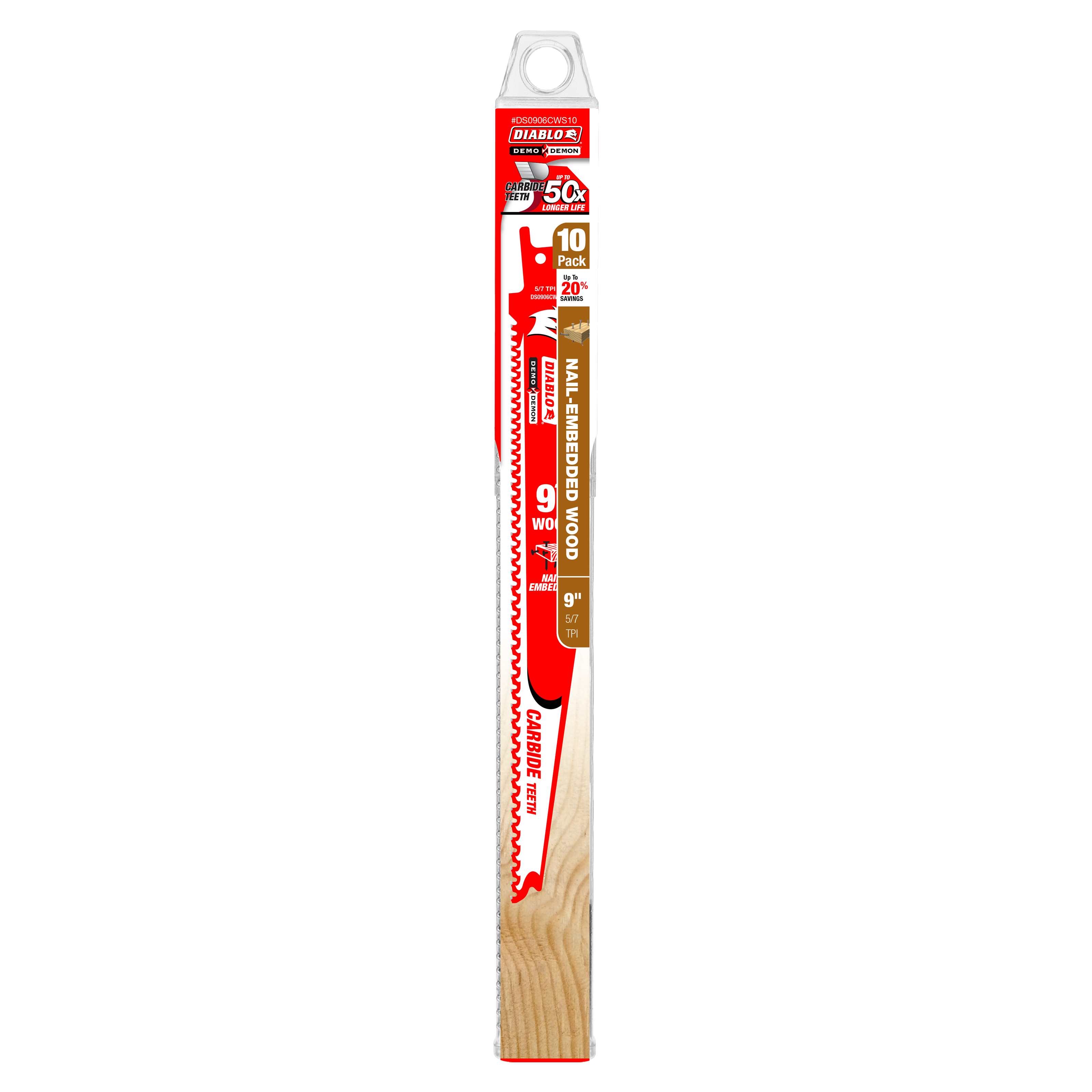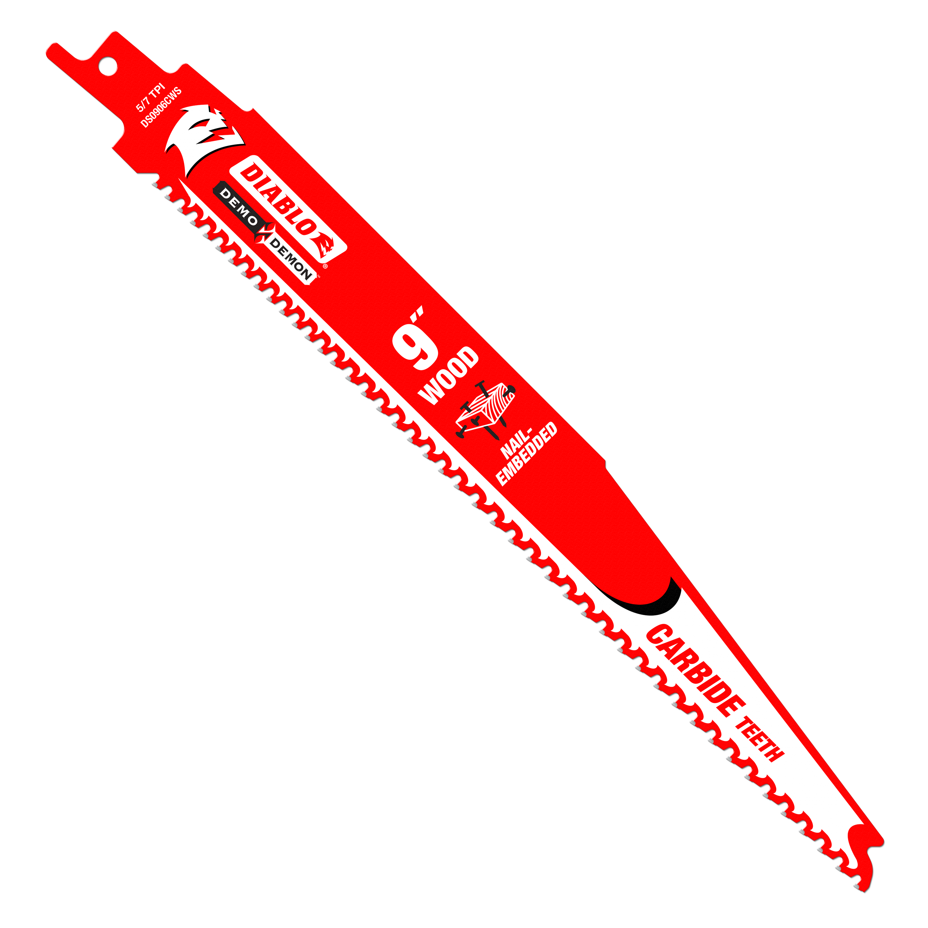 Diablo DS0906CWS10 9" 5/7 TPI Demo Demon™ Carbide Teeth Reciprocating Saw Blades for Nail-Embedded Wood (10-Pack)