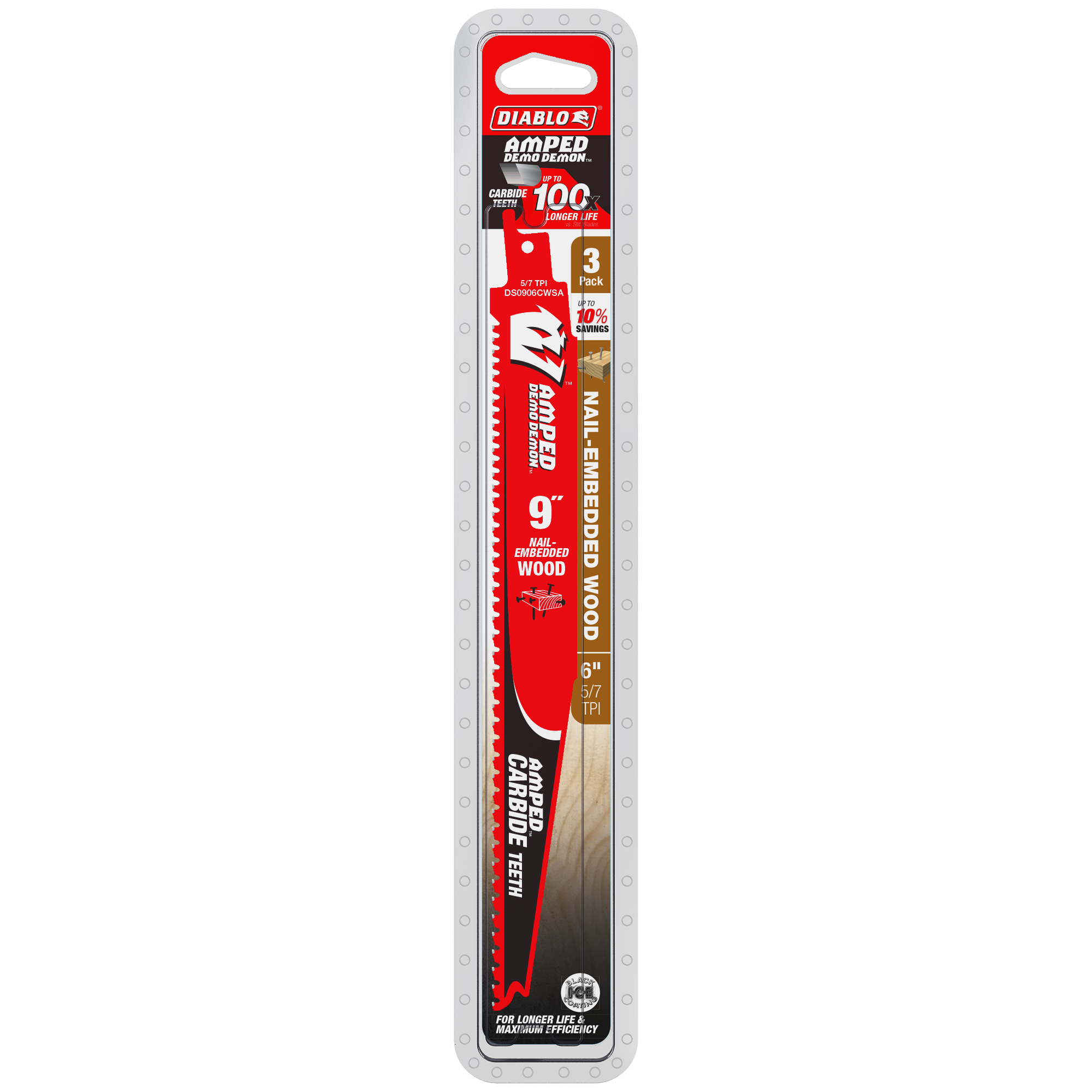 Diablo DS0906CWSA3 9" 5/7 TPI AMPED™ Demo Demon™ Carbide Teeth Reciprocating Saw Blade for Nail-Embedded Wood