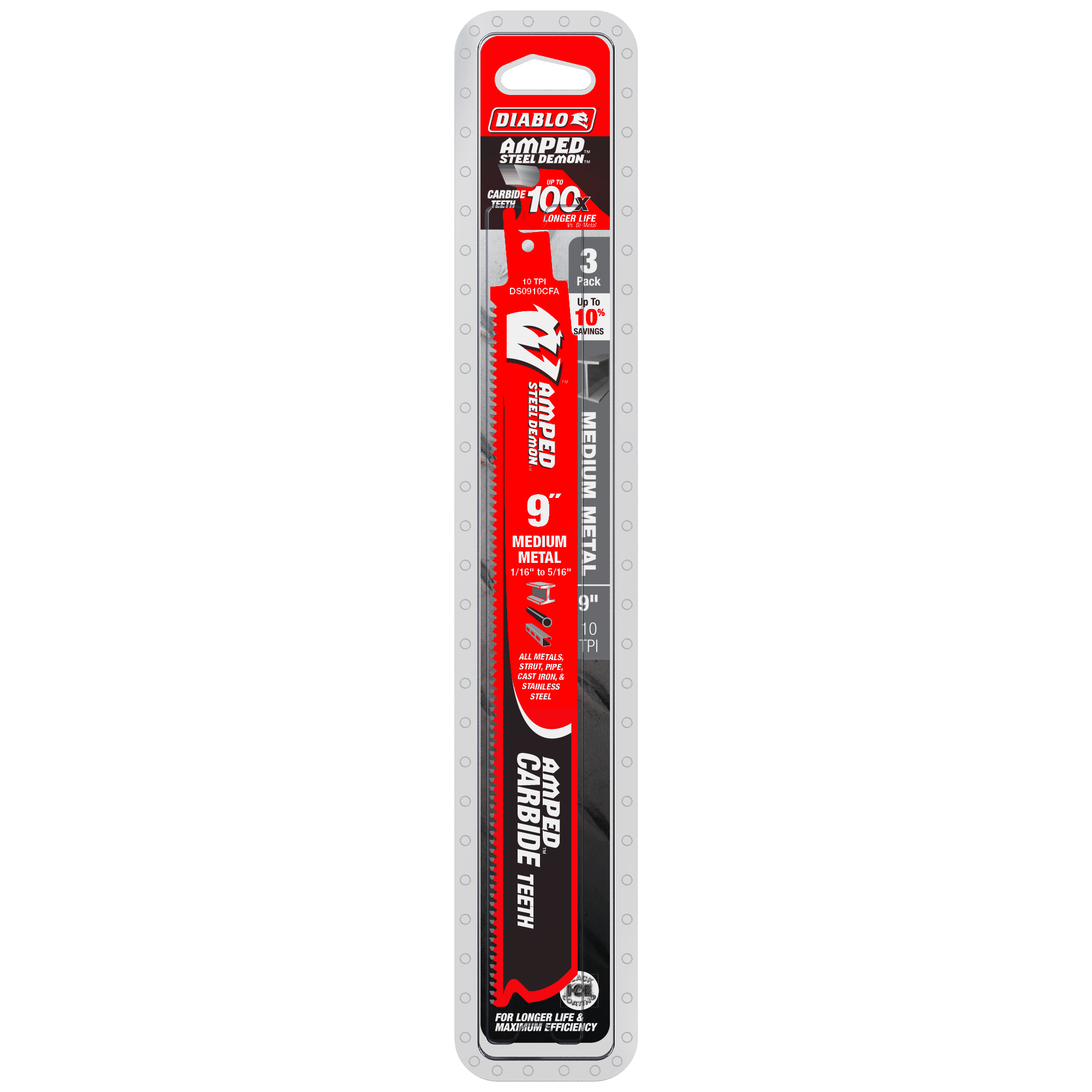 Diablo DS0910CFA3 9" 10TPI AMPED™ Steel Demon™ Carbide Teeth Reciprocating Saw Blades for Medium Metal (3-Pack)