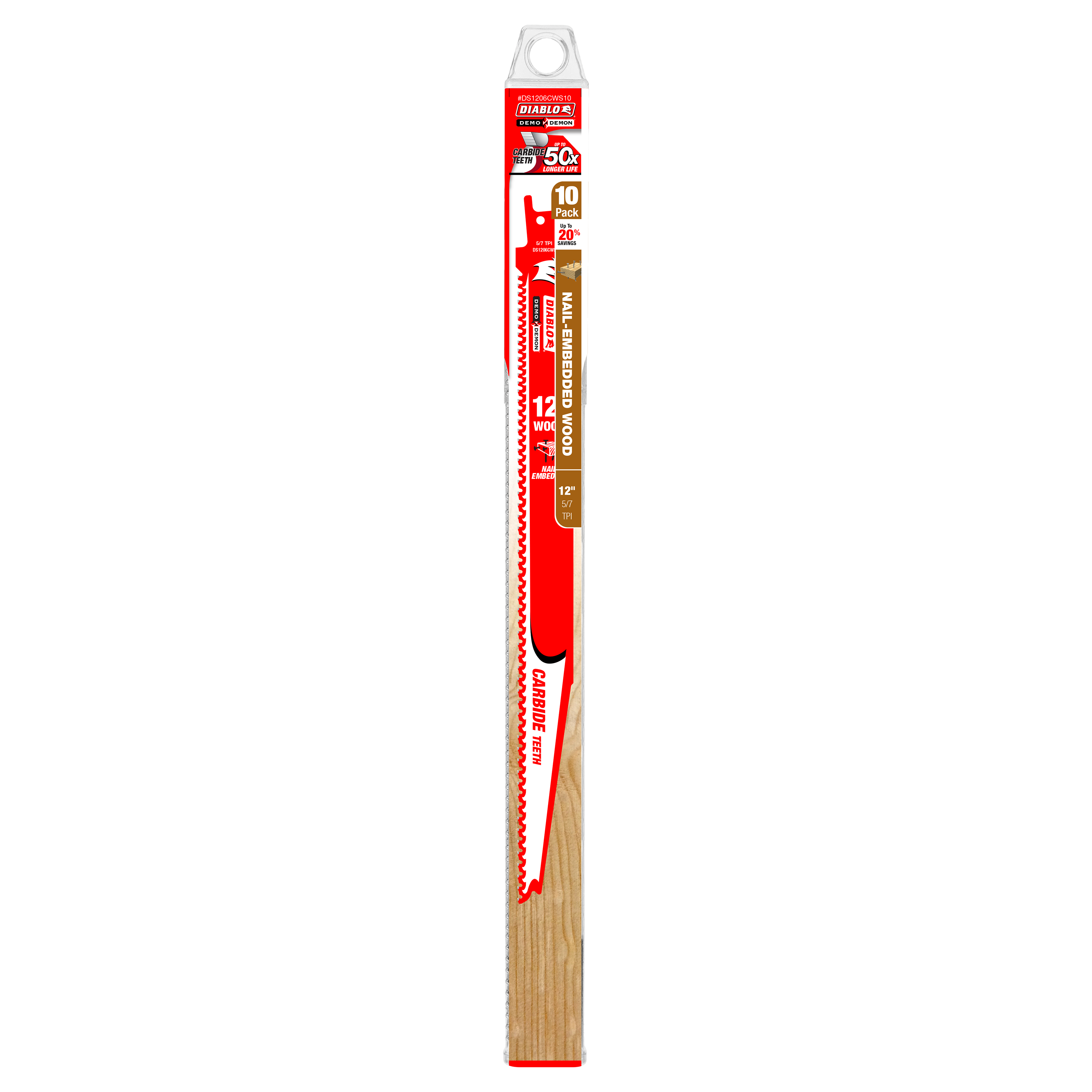 Diablo DS1206CWS10 12" 5/7TPI Demo Demon™ Carbide Teeth Reciprocating Saw Blades for Nail-Embedded Wood (10-Pack)