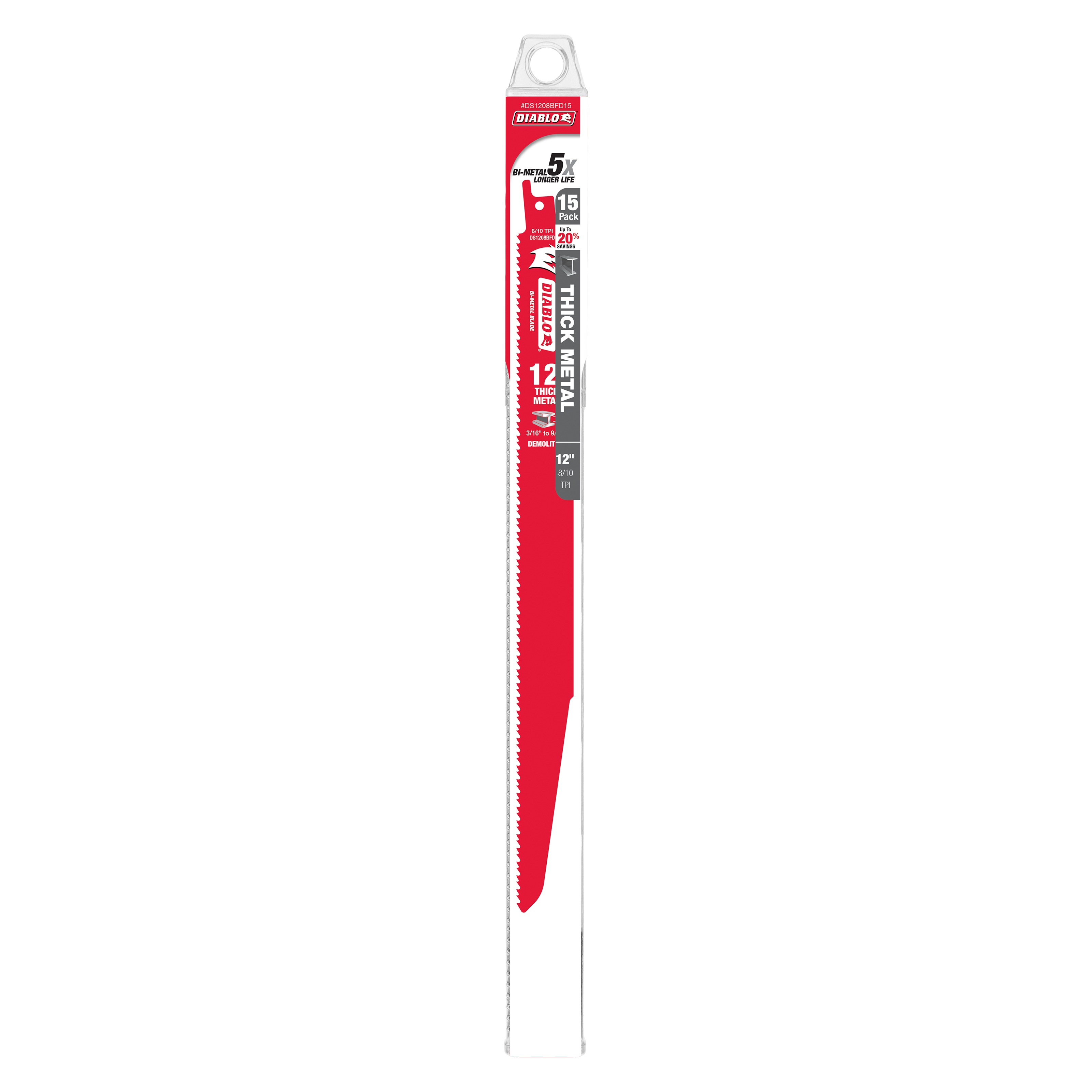 Diablo DS1208BFD15 12" Bi-Metal Reciprocating Saw Blade for Thick Metal/Demolition (3/16" to 9/16") (15-Pack)
