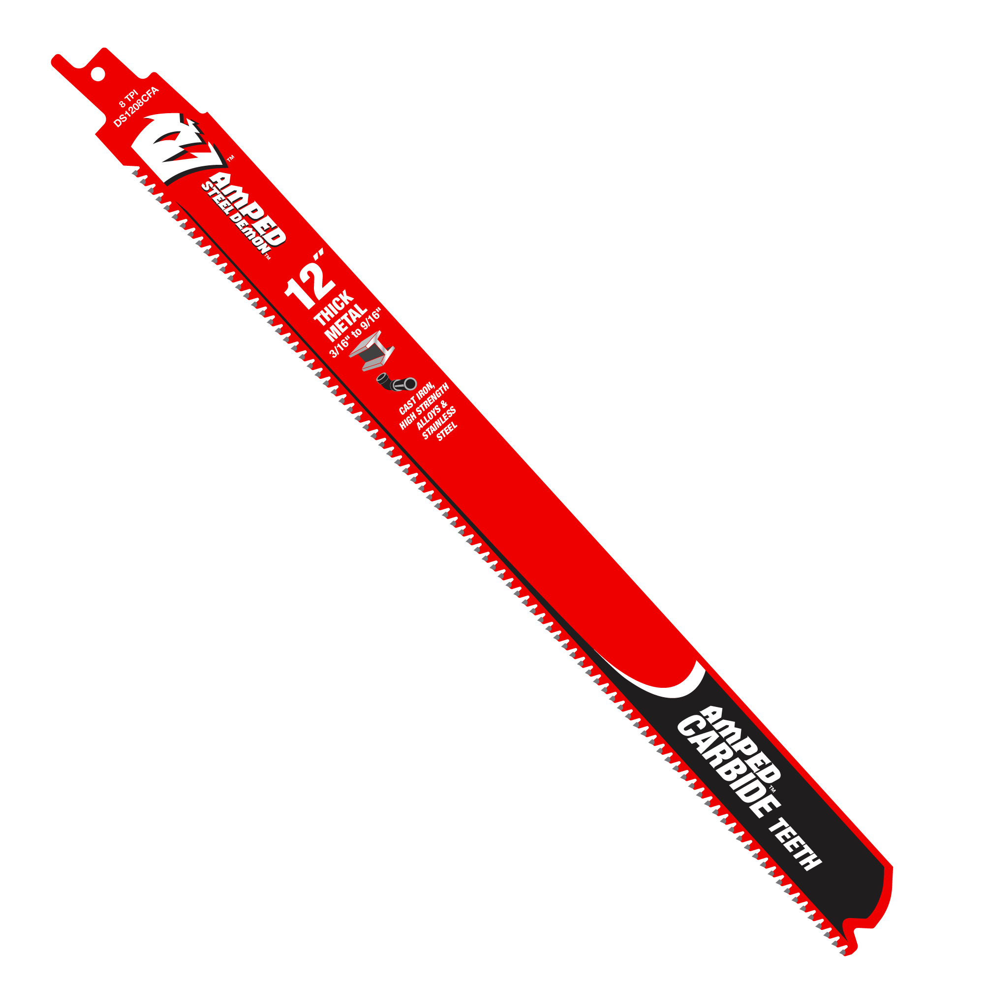 Experience unparalleled cutting performance with the Diablo DS1208CFA3 12" 8TPI AMPED™ Steel Demon™ Carbide Teeth Reciprocating Saw Blades. Designed specifically for thick metal, this 3-pack of high-quality blades is equipped with the innovative AMPED™ technology, ensuring that you power through your toughest jobs with ease.