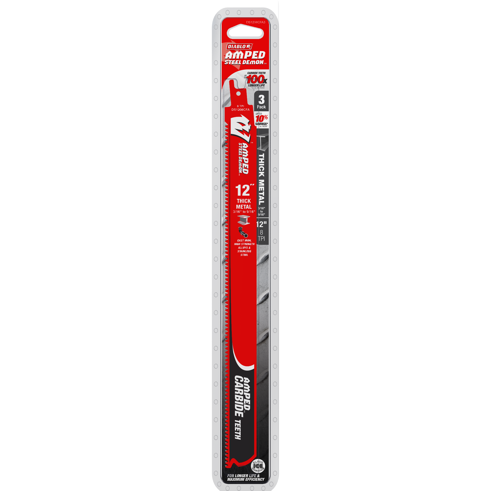 Diablo DS1208CFA3 12" 8TPI AMPED™ Steel Demon™ Carbide Teeth Reciprocating Saw Blades for Thick Metal (3 Pack)