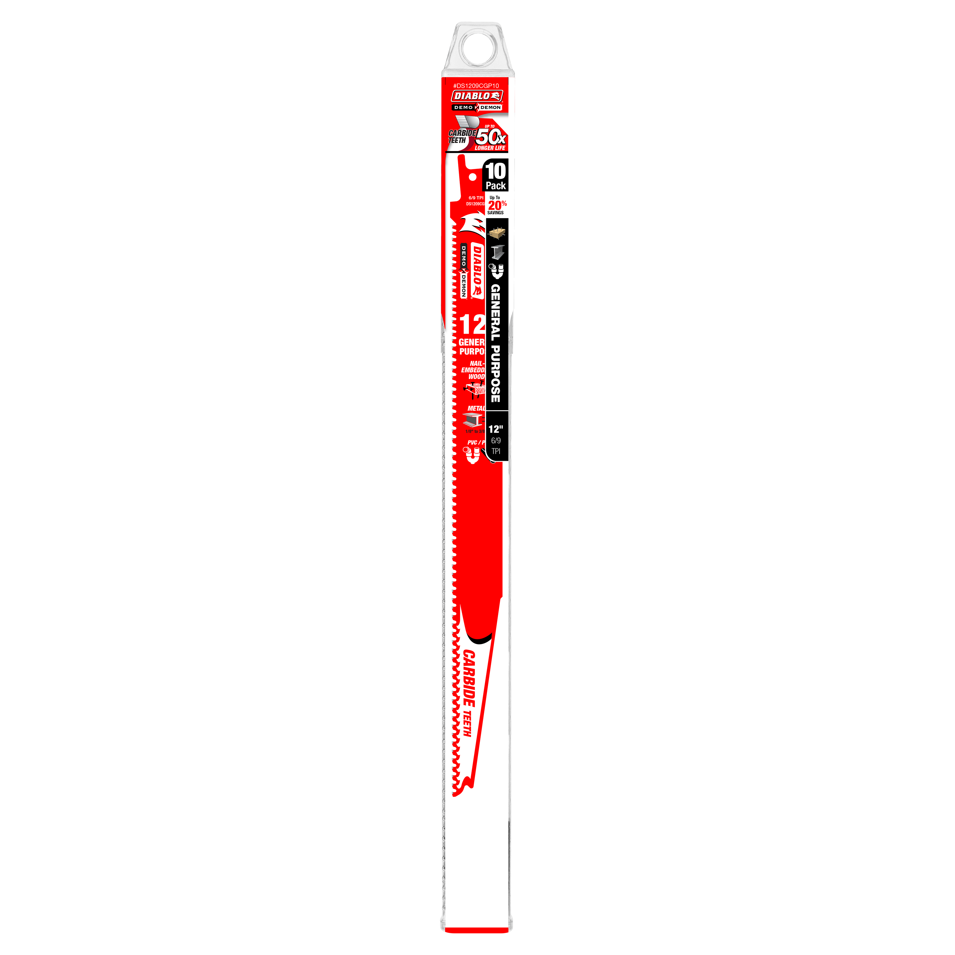 Diablo DS1209CGP10 12" 6/9TPI Demo Demon™ Carbide Tipped Reciprocating Saw Blades for General Purpose Cuts (10-Pack)