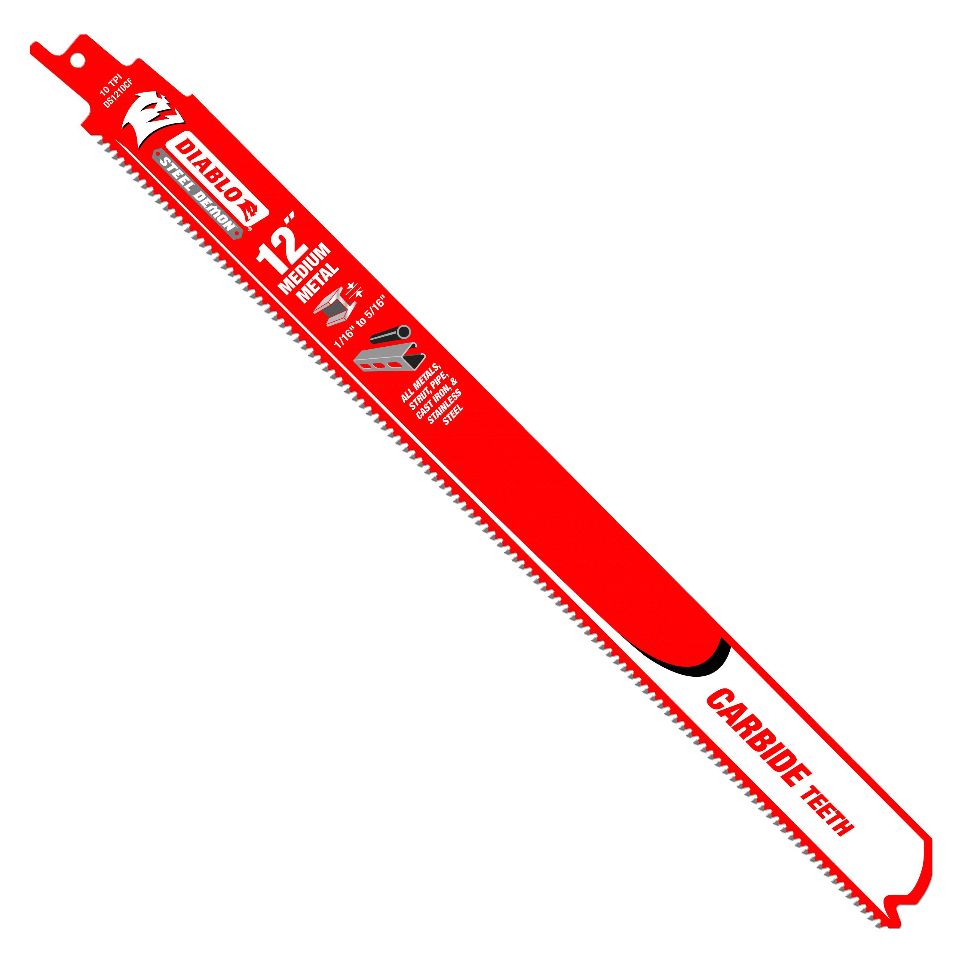 Experience unparalleled cutting performance with the Diablo DS1210CF10 12" 10TPI Steel Demon™ Carbide Teeth Reciprocating Saw Blades. Designed specifically for medium metal applications, these blades make light work of strut, pipe, stainless steel, and a variety of other metals with thicknesses ranging from 1/16" to 5/16".