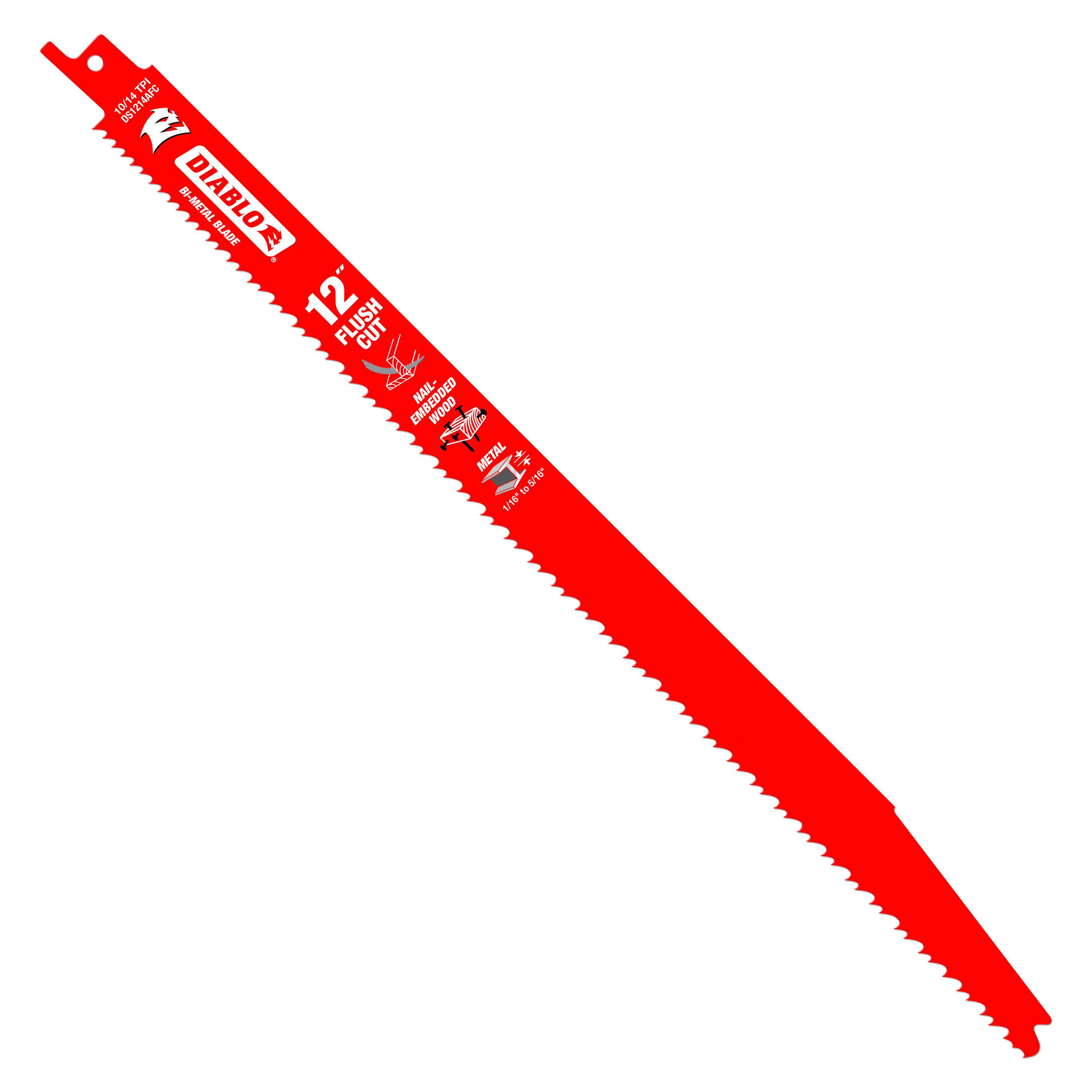 Diablo DS1214AFC 12" 10/14TPI Flush Cut Bi-Metal Reciprocating Saw Blade for Nail-Embedded Wood and Metal