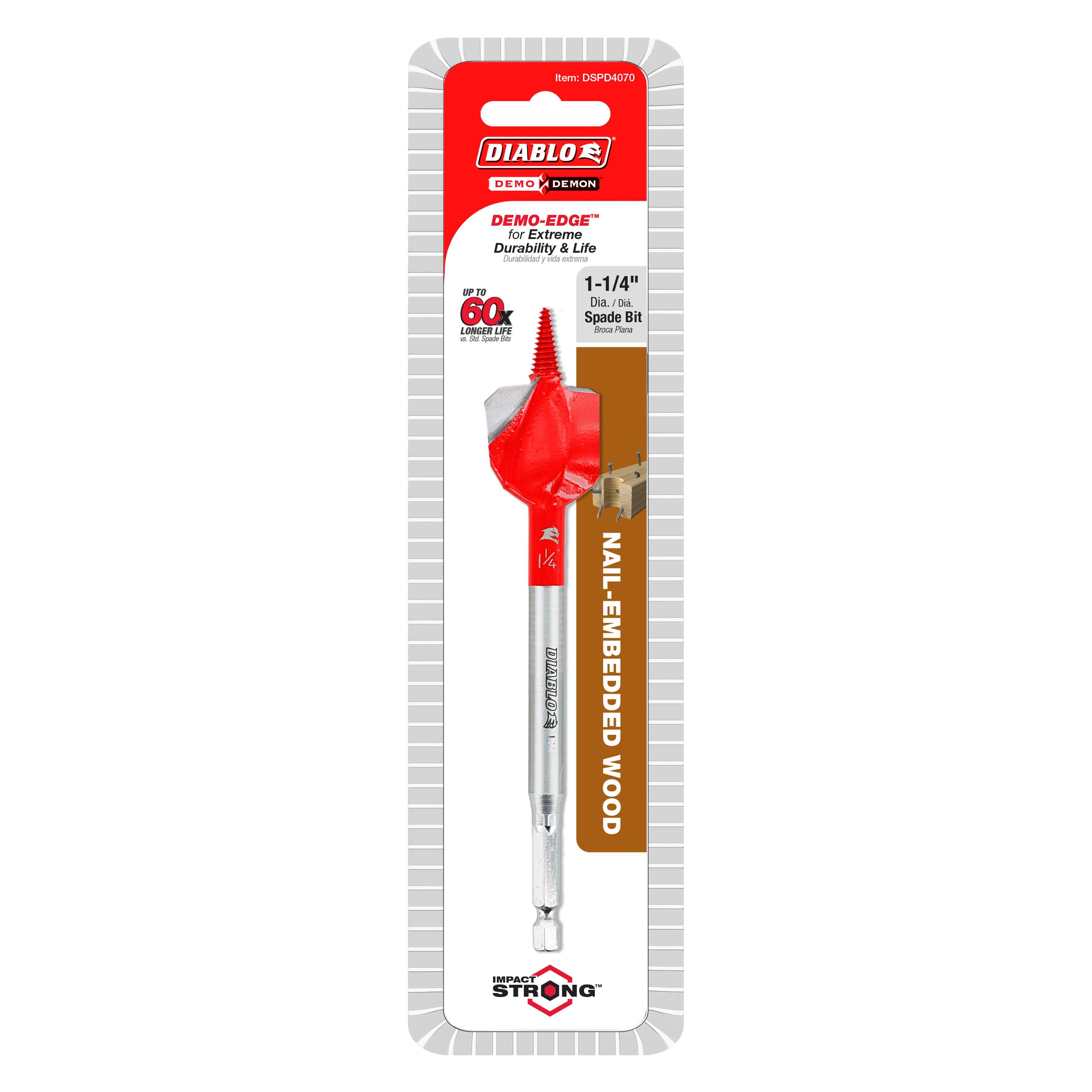 Introducing the Diablo DSPD4070 1-1/4" x 6" Demo Demon™ Spade Bit, your ultimate solution for drilling through nail-embedded wood with ease and precision. Engineered for superior performance, this spade bit features advanced technology that ensures durability and efficiency on every job.