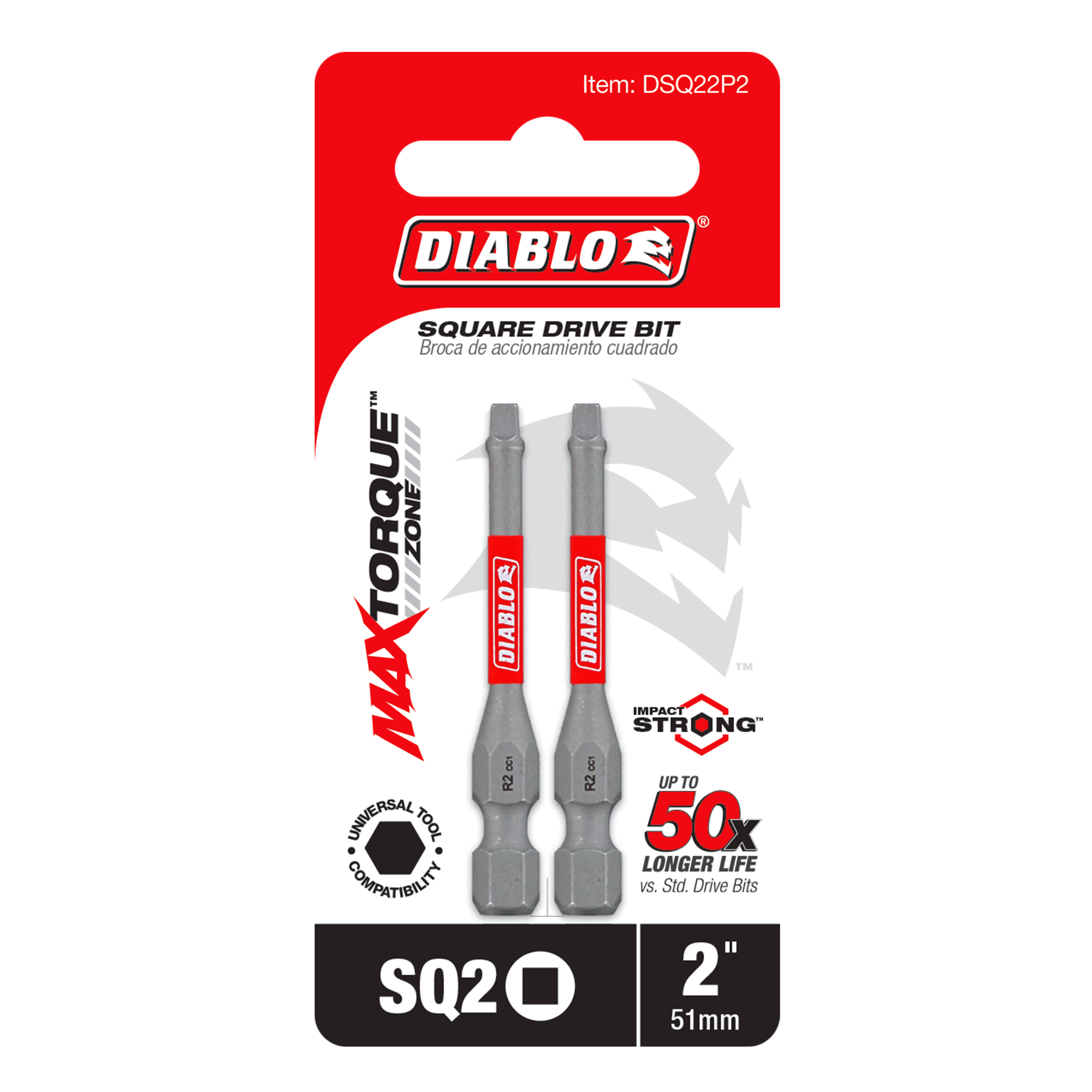 Experience superior driving power with the Diablo DSQ22P2 2" #2 Square Drive Bit, a must-have addition to every toolbox. Expertly crafted for both professionals and DIY enthusiasts, this bit guarantees precision and reliability in every application. Its robust construction ensures maximum durability, allowing it to withstand the toughest fastening tasks without wear or stripping.