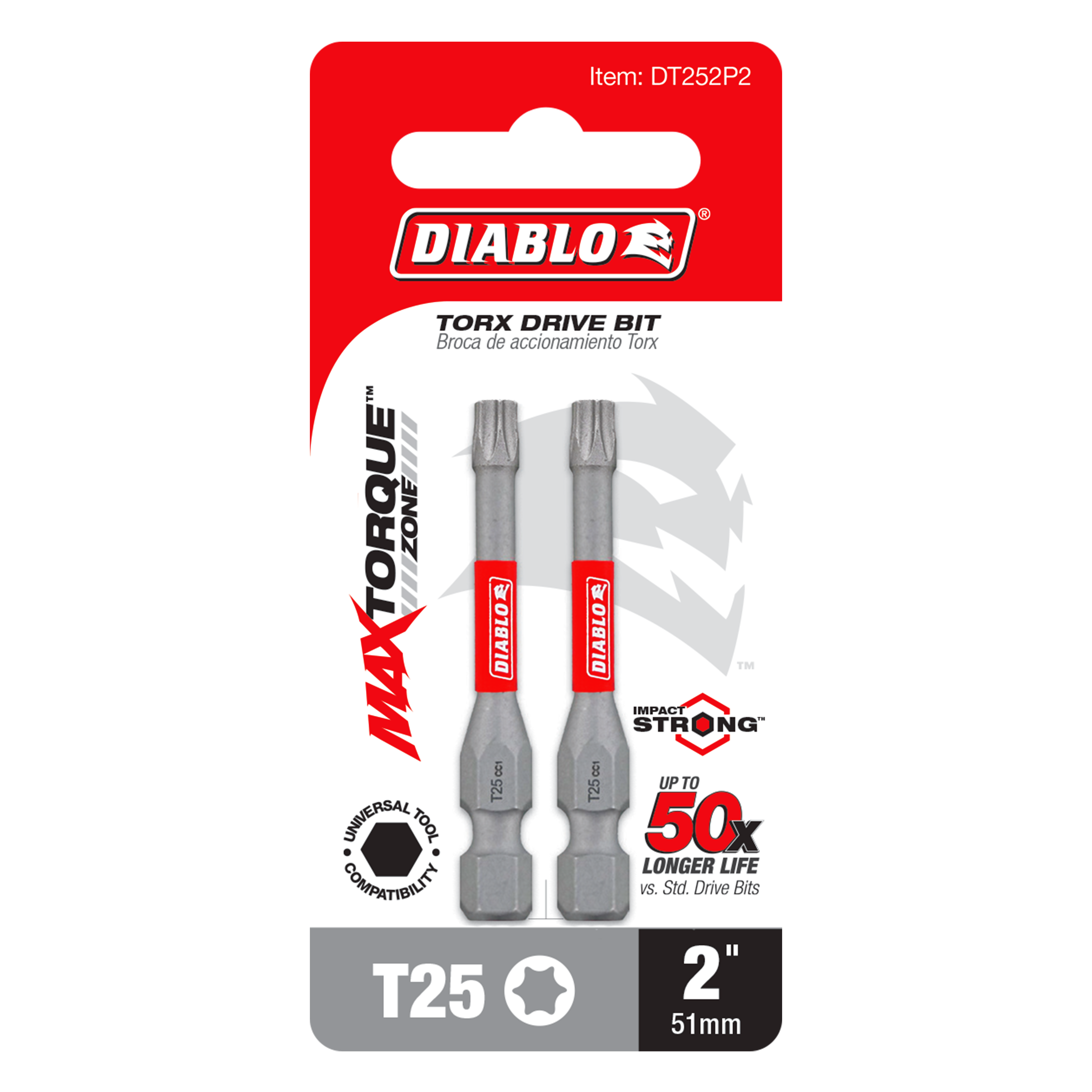 Constructed from high-grade materials, the Diablo DT252P2 offers outstanding resistance to wear and tear, making it a reliable companion for heavy-duty applications. Its compact 2-inch length allows for easy maneuverability in tight spaces, while the #25 Torx head is ideal for a wide range of screws commonly used in woodworking, automotive, and construction projects.