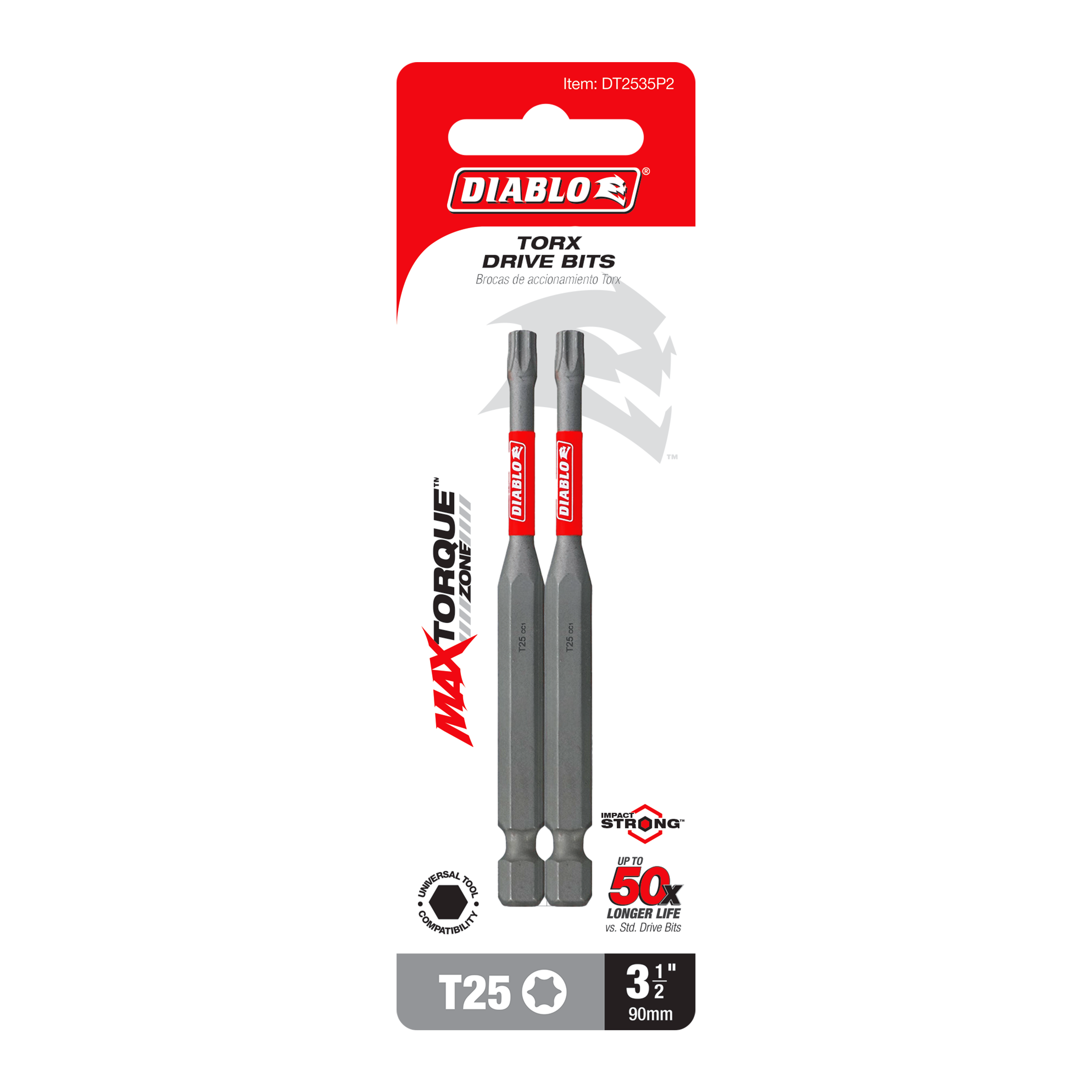 Enhance your tool collection with the Diablo DT2535P2 3-1/2" #25 Torx Drive Bit, engineered to deliver exceptional performance for all your fastening needs. Crafted from premium materials, this Torx bit combines strength and precision to handle tough applications with ease, ensuring a secure fit every time.