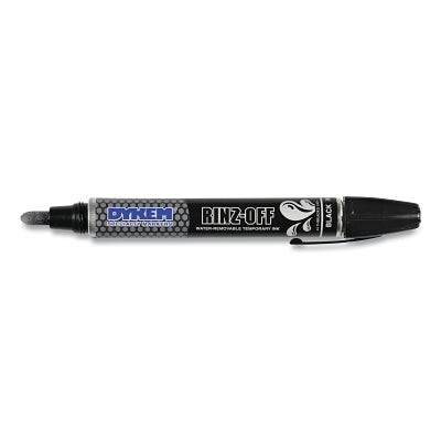 Experience the convenience and reliability of the DYKEM 44109 RINZ OFF Water Removable Temporary Marker, designed to make your marking tasks effortless and precise. Featuring a rich black ink, this marker provides clear, bold lines that stand out on a variety of surfaces, ensuring your temporary marks are easily visible for all your professional or DIY projects.