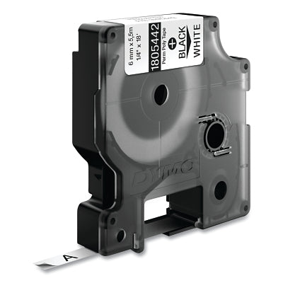 DYMO 1805442 Industrial Rhino Permanent Polyester Label Cartridge 1/4 in W x 18 ft L Black Print on White Background