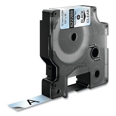 DYMO 622289 Industrial Rhino Permanent Polyester Label Cartridge, 1/2 in W x 18 ft L, Black Print on Clear Background