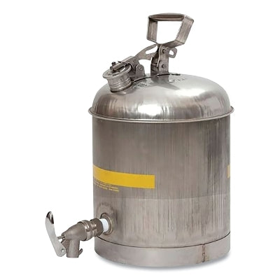 EAGLE 1327 Faucet Can, Type I, 5 gal, Silver, SS with Stainless ECO Faucet with Neoprene Gasket