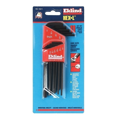 Eklind Tool 10211 Hex-L Key Set, 11 per holder, Hex Tip, Inch, Long Arm