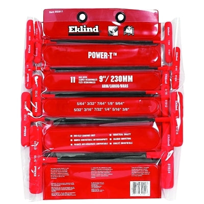 Eklind Tool 60911 Power-T Hex Key Sets, 11 per set, Hex Tip, Inchm, 9 in Handle