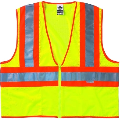 Ergodyne 21325 GloWear Safety Vest 8230Z Two-Tone Class 2 Type R 1 Pocket Reflective Strip Zipper Large/X-Large Lime