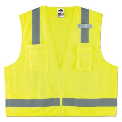 Ergodyne 24027 GloWear Safety Vest 8249Z Surveyors Class 2 Type R 4 Pockets Refl. Tape 1 Mic Tabs Zipper Economy 2X-L/3X-L Lime
