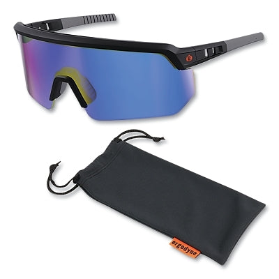 Ergodyne 55008 Skullerz AEGIR Safety Glasses/Sunglasses, Blue Mirror Polycarbonate Lens, Fog-Off+ Coating, Matte Black Frame