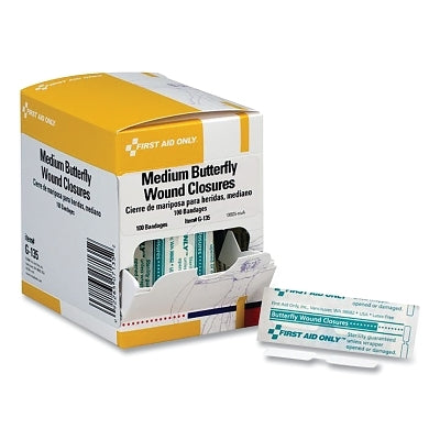 Ensure rapid recovery and comfort with the First Aid Only G135 Butterfly Wound Closure. Designed for efficiency and ease of use, this wound closure boasts dimensions of 1-3/4 inches wide and 3/8 inches long, making it an essential addition to any first aid kit.