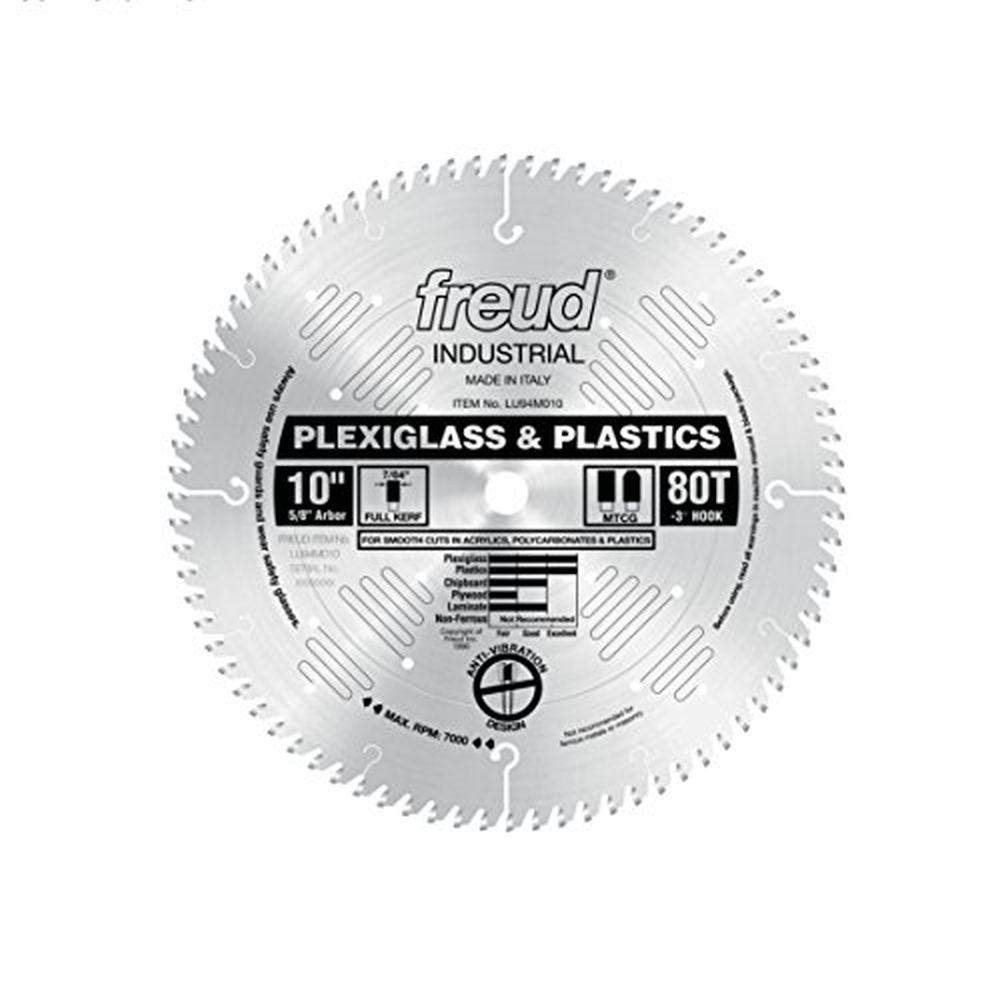 Freud 10 In 80 Tooth Plexiglass&Plastic Cutting Saw Blade 5/8 In Arbor LU94M010