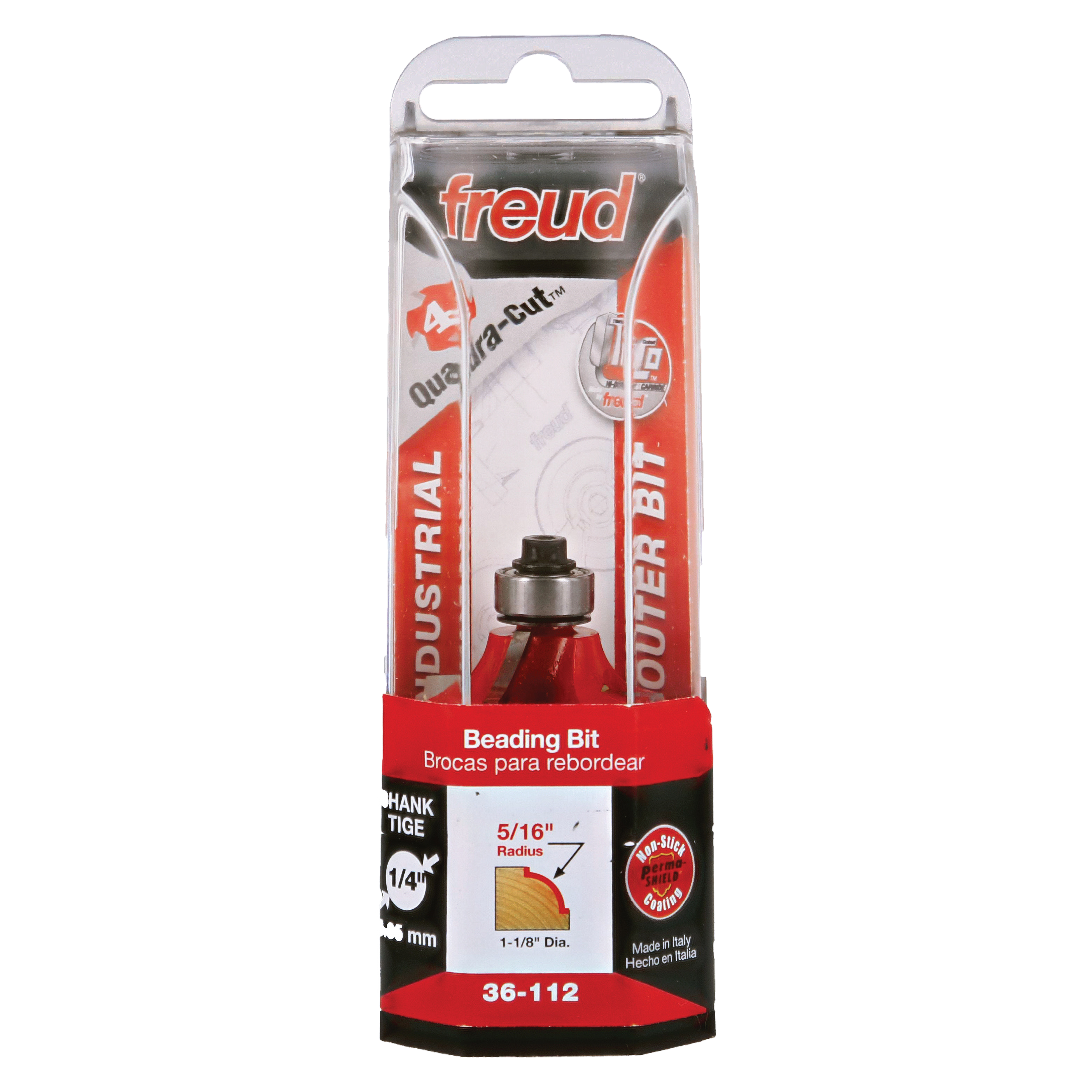The Freud 36-112 features a built-in bearing that facilitates the creation of an inset bead at the bottom of the radius. This functionality not only enhances the aesthetic appeal of your projects but also provides versatility in rounding over square corners with ease. Whether you are crafting intricate moldings or softening edges, this bit is a must-have in your toolkit.