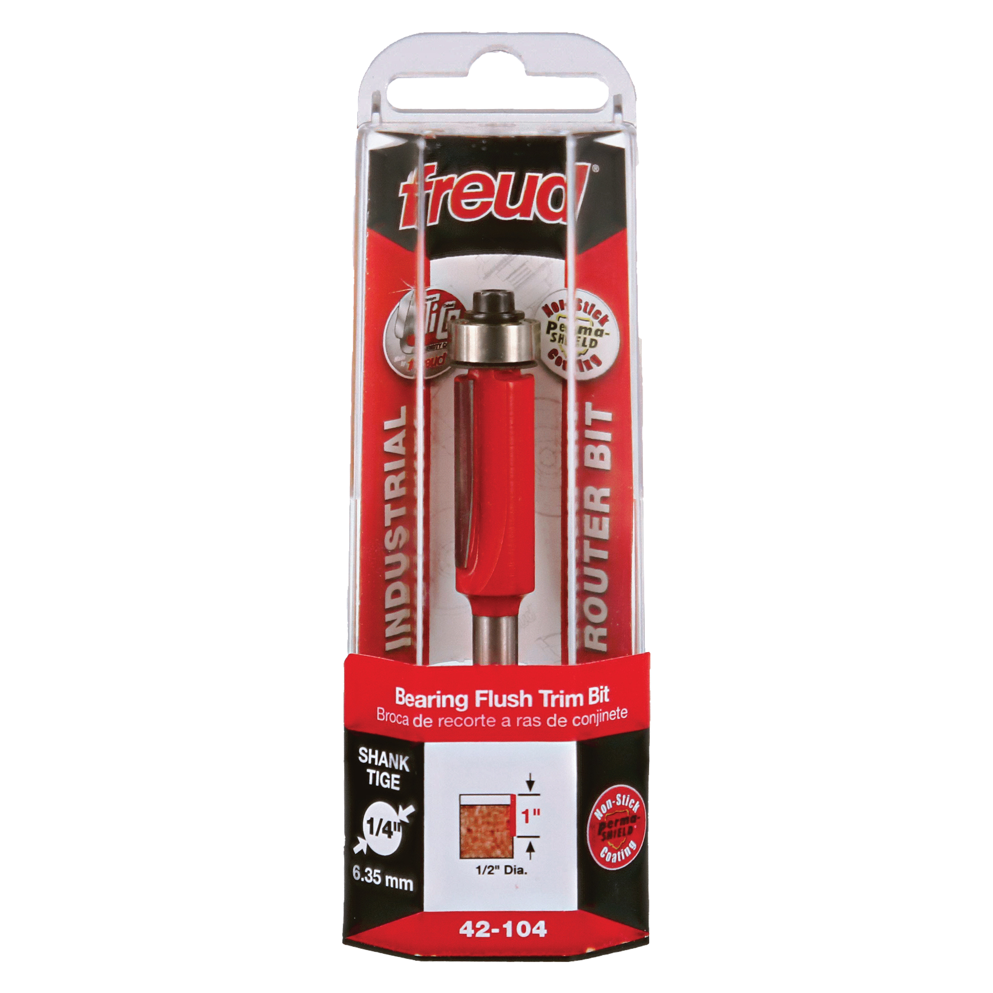 Elevate your woodworking projects with the Freud 42-104 1/2" (Dia.) Bearing Flush Trim Bit, designed for precision and versatility. This premium flush trim bit is perfect for a variety of trimming applications, ensuring clean and smooth cut-offs along flush edges.