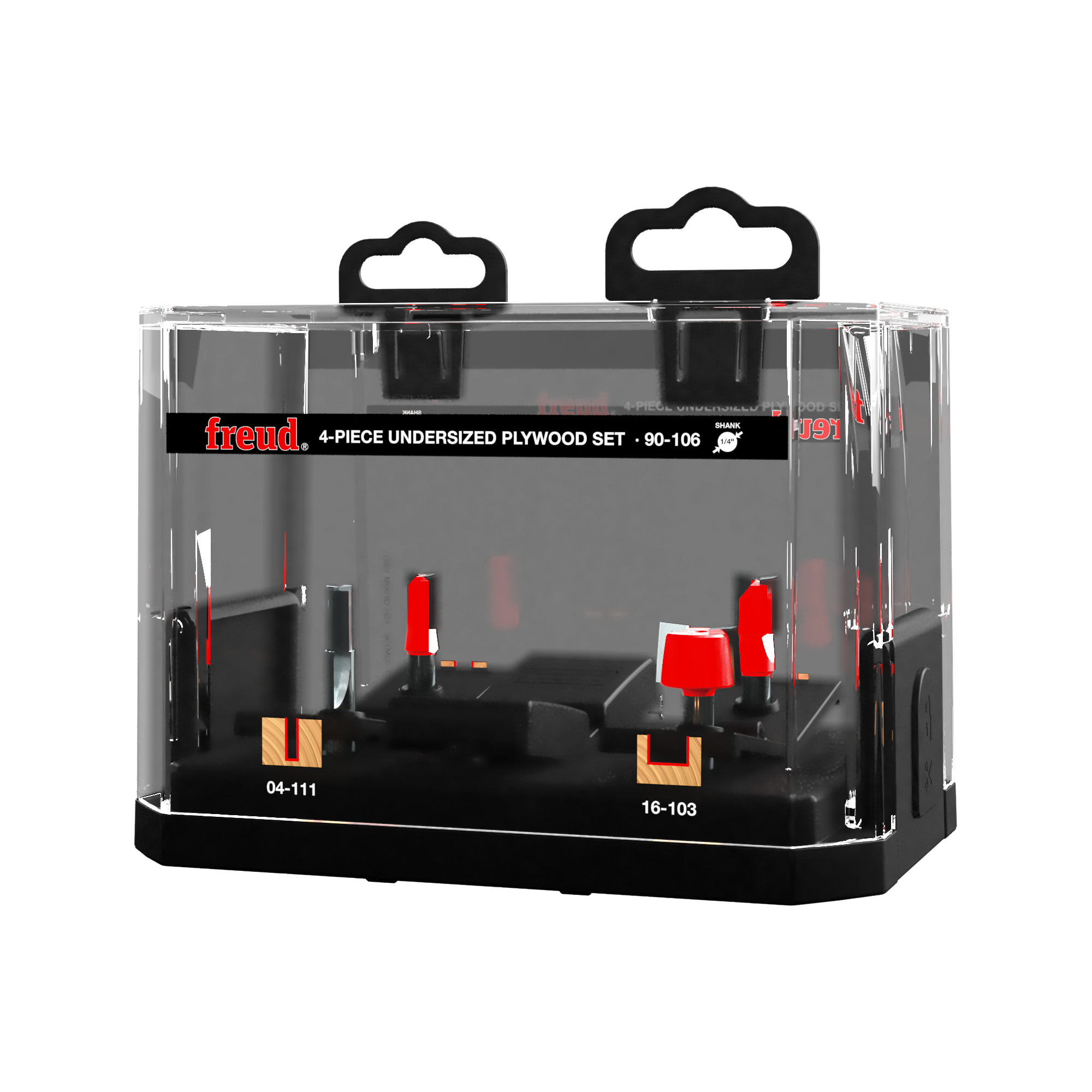 Elevate your woodworking projects with the Freud 90-106 4 Piece Undersized Plywood Bit Set. Specially crafted for precision, this set is designed to create perfectly fitted grooves and dadoes tailored for today's undersized plywood panels. Whether you're a professional carpenter or a DIY enthusiast, these bits will transform the way you work with plywood.
