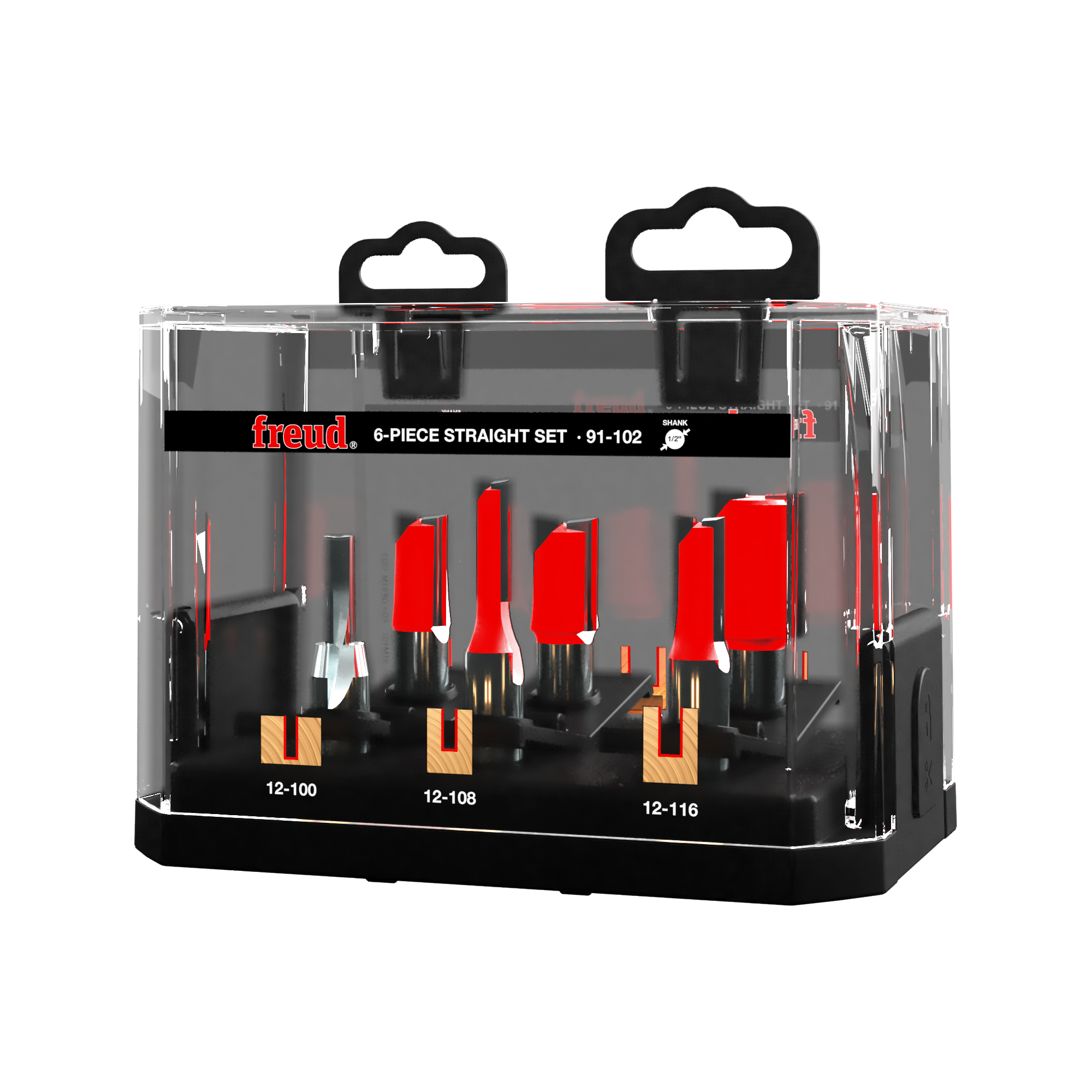 Transform your woodworking projects with the Freud 91-102 6 Piece Straight Bit Set. This comprehensive collection includes six essential bits, with diameters ranging from 1/4" to 1", ensuring you have the perfect size for every task. Whether you're creating grooves, dadoes, or rabbets, this set covers all the common sizes you'll need.