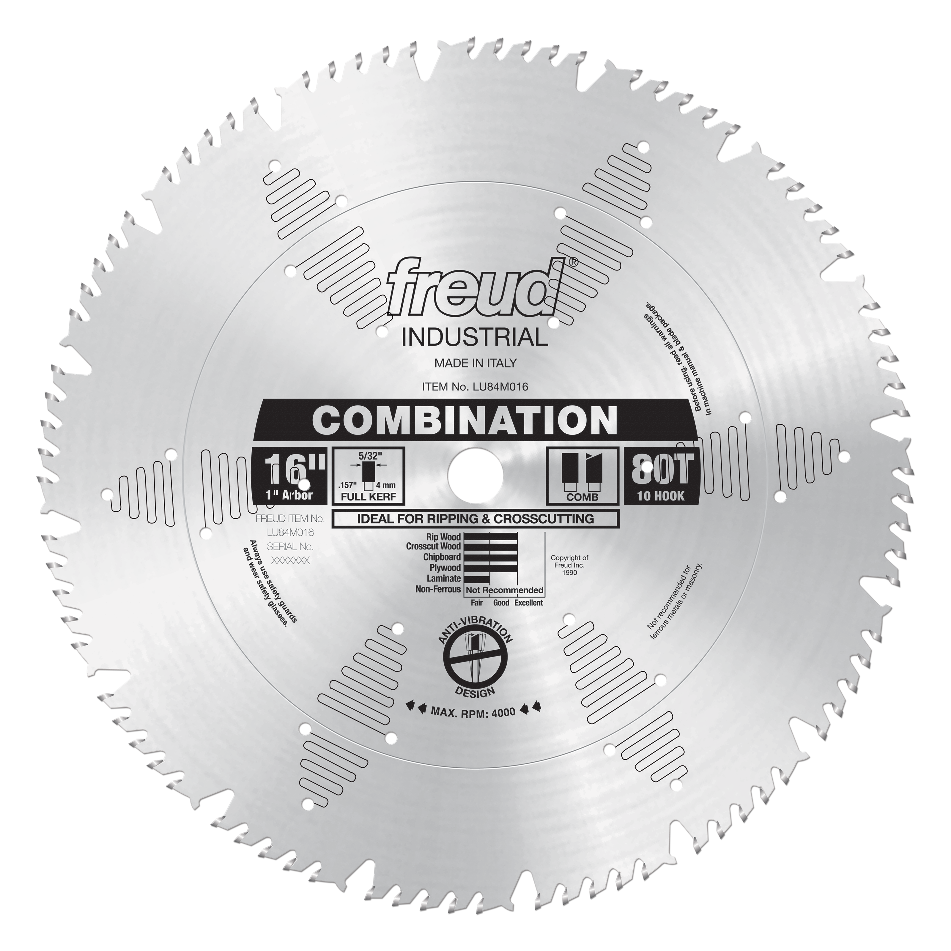 With the Freud LU84M016 16" Combination Blade, you can tackle a wide range of projects, from ripping plywood to crosscutting hardwood, effortlessly. Upgrade your cutting tools today and experience the unmatched reliability and performance that only Freud can offer. Don't settle for less when it comes to your craftsmanship. Choose the Freud LU84M016 and elevate your woodworking game!