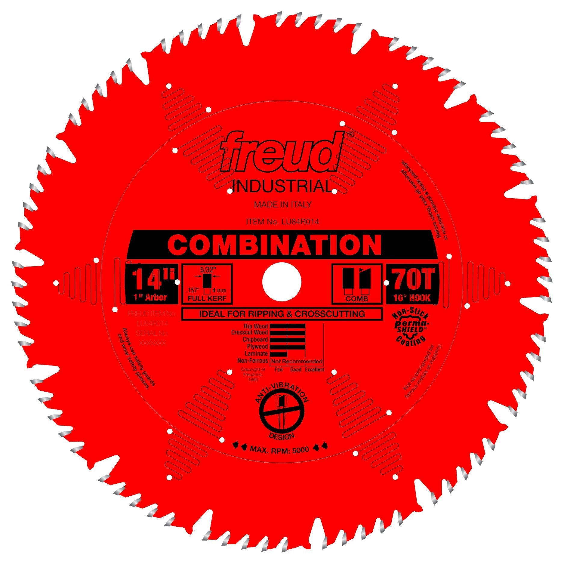 This ultimate combination blade combines one flat tooth for ripping, followed by four alternate top bevel teeth for crosscutting and a large gullet for effective chip clearance. This blade also features laser cut anti-vibration slots, practically eliminating the vibration that resonates in standard blades. With this ultimate combination blade, there is no need for stabilizers.