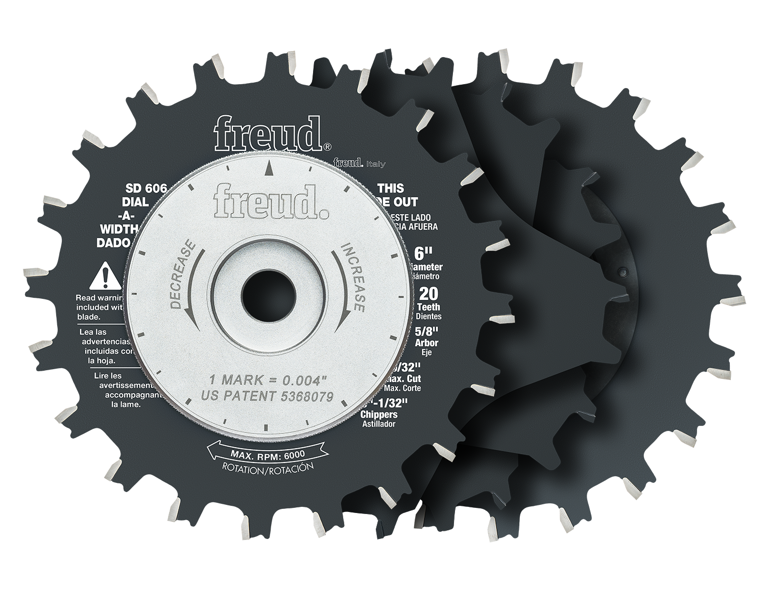 Transform your woodworking projects with the Freud SD606 6" Dial-A-Width Stacked Dado Set. This innovative set redefines precision cutting, making it easier than ever to achieve flawless results in your cabinetry and furniture building. Unlike traditional stacked dado sets, the SD606 features a patented dial system that replaces cumbersome shims, allowing for seamless width adjustments with just a simple turn.