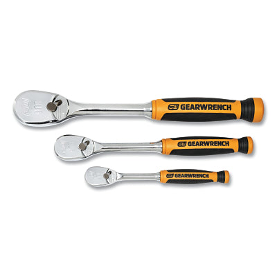 GEARWRENCH 81207T 90T Ratchet, Tear Drop, 1/4 in, 3/8 in, and 1/2 in Drive, Alloy Steel, Polish Chrome/Cushion Grip, 3-Pc Standard Handle Set