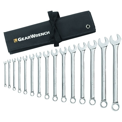 GEARWRENCH 81918 Combination Non-Ratcheting Wrench Set, 15 Piece, 12 Point, Inch, Vinyl Roll