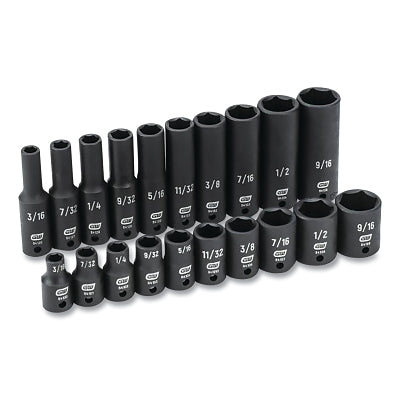 This 20-piece set covers a range of SAE sizes from 3/16 inch to 9/16 inch, including both deep and standard length sockets to reach bolts in tight or recessed spaces. Crafted for impact use, these sockets are built to withstand high torque applications without compromising strength or performance.