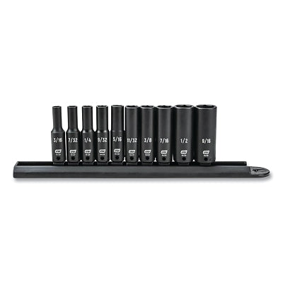 GEARWRENCH 84908 Impact Socket Set, 1/4 in Dr, 6-point, SAE, 3/16 in to 9/16 in, 10-Pc Deep Length, Incl Metal Rail