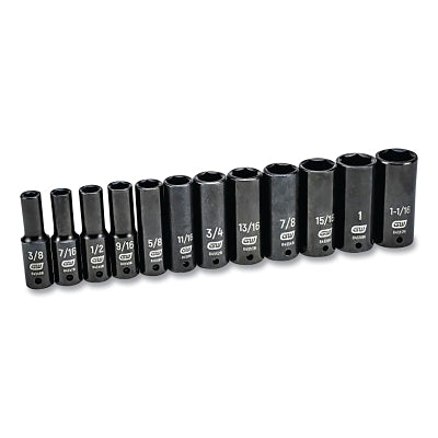 GEARWRENCH 84942N Impact Socket Set, 1/2 in Dr, 6-point, SAE, 3/8 in to 1-1/16 in, 12-Pc Deep Length, Incl Blow Mold Case