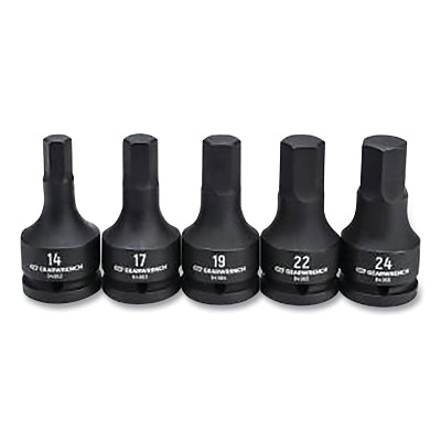 GEARWRENCH 84968-06 Impact Socket Set, 3/4 in Dr, 6-point, Metric, 14 mm to 24 mm, 5-Pc Hex Bit, Incl Metal Rail