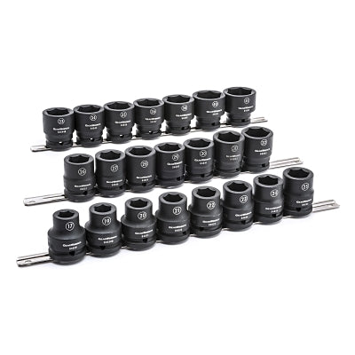 GEARWRENCH 84973 Impact Socket Set, 3/4 in Dr, 6-point, Metric, 17 mm to 41mm, 22-Pc Standard Length, Incl Metal Rail