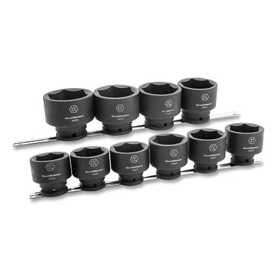 GEARWRENCH 84998 Impact Socket Set, 3/4 in Dr, 6-point, SAE, 1-11/16 in to 2-3/8 in, 10-Pc Standard Length, Incl Metal Rail