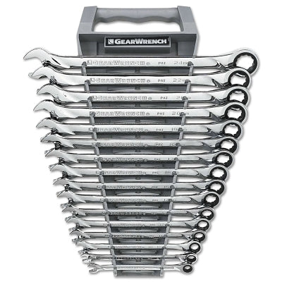 GEARWRENCH 85099 16 Pc XL Combination Ratcheting Wrench Sets, 12 Point, Metric