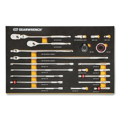 GEARWRENCH 86521 Drive Tool Modular Tool Set w/EVA Foam Tray, Full Polish Chrome Finish, Alloy Steel, Incl 3/8 in Dr/Adap/Ext 21-Pc