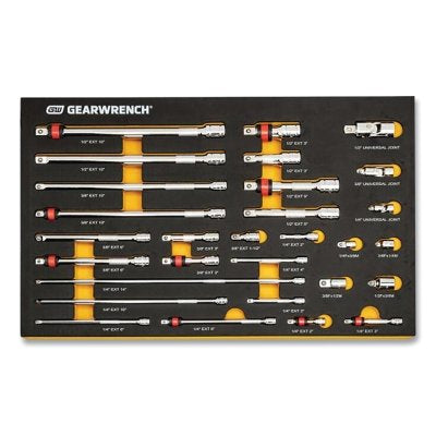 GEARWRENCH 86523 Drive Tool Accessory Modular Set w/EVA Foam Tray, Alloy Steel, 1/4 in, 3/8 in, 1/2 in Adap/Ext/Univ Jt, 29-Pc