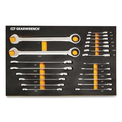 GEARWRENCH 86526 72T Modular Combination Ratcheting Wrench Tool Set, SAE, Includes Precut EVA Foam Tray, 21-Pc