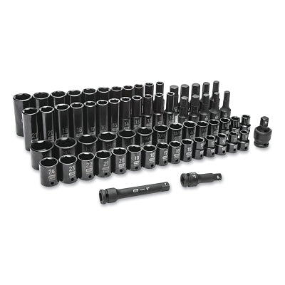 GEARWRENCH 89095 Impact Socket Set, 1/2 in Dr, 6-point, SAE/Metric, 7/16 in to 10mm, 65-Pc Deep/Standard Lengths, Incl Blow Mold Case
