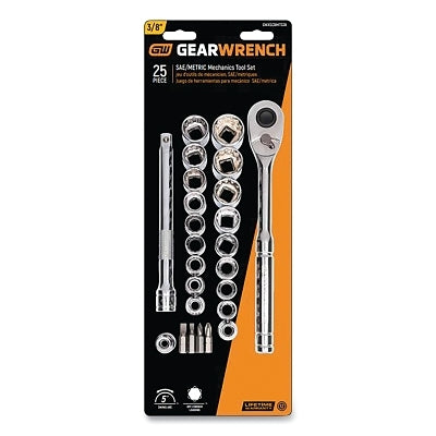 GEARWRENCH GWXSCBMTS38 Mechanics Hand Tool Set, 25 Pc, 3/8 in Drive, Socket Rail and Bit Holder, Metric/SAE