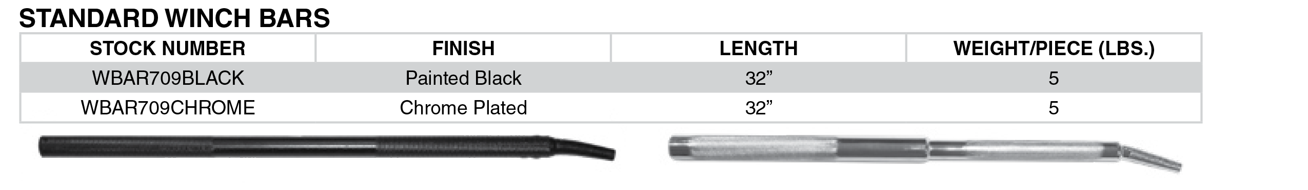 The Gold-Tip WBAR709BLACK STANDARD WINCH BARS are an essential tool for anyone in need of reliable and durable winch bars. Designed with a robust construction and a sleek black finish, these 32" standard winch bars are perfect for both professional and personal use. They provide exceptional leverage and control, making winching tasks smoother and more efficient.