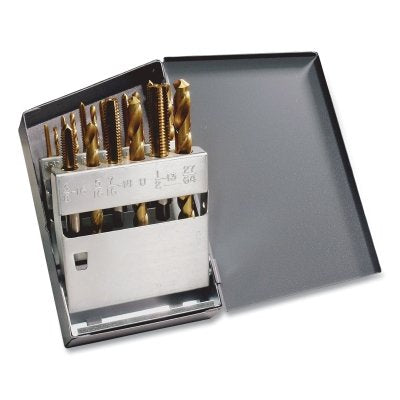 Elevate your drilling and tapping experience with the Greenfield Threading 330084 HTGP TiN Jobber Drill and Plug Hand Tap Set. This 18-piece set is meticulously designed for precision, durability, and efficiency, making it an essential addition to any toolbox.